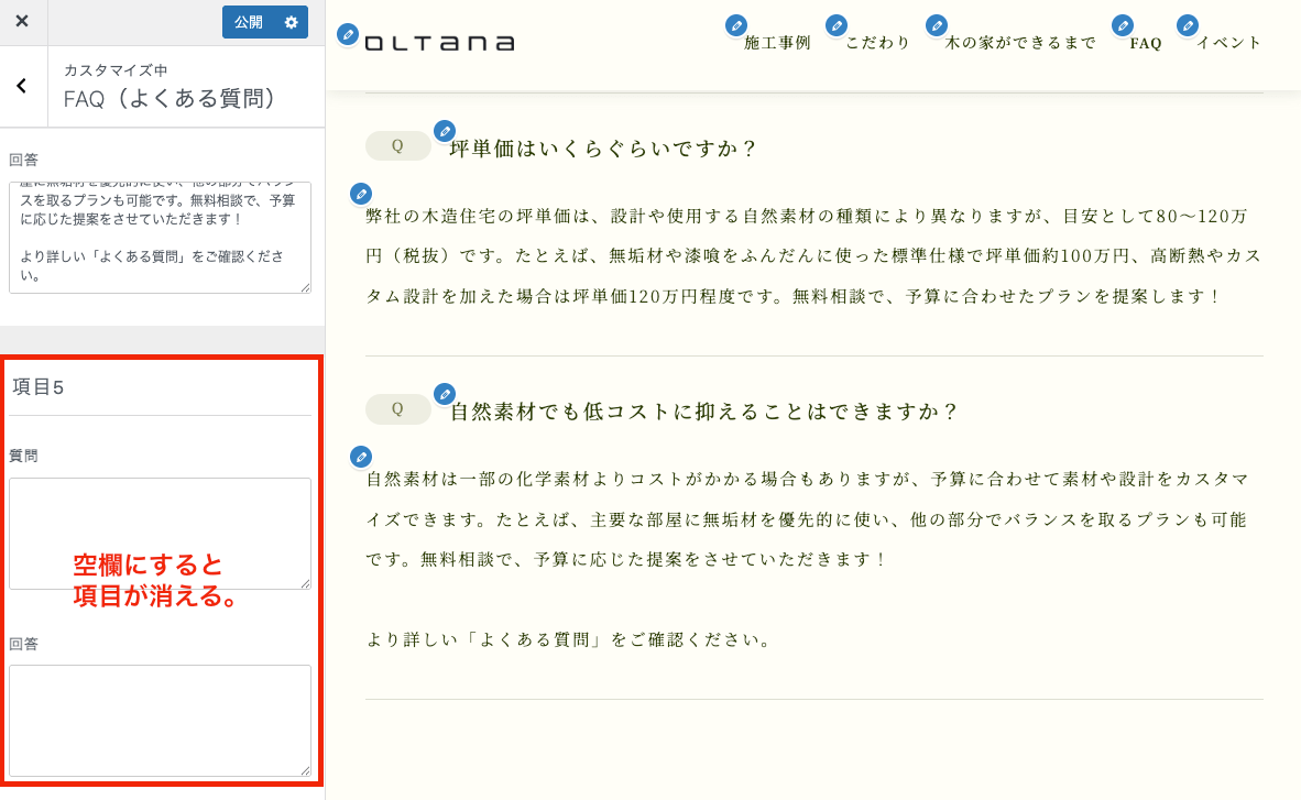 OLTANA No.005の「FAQ(よくある質問)」の設定方法