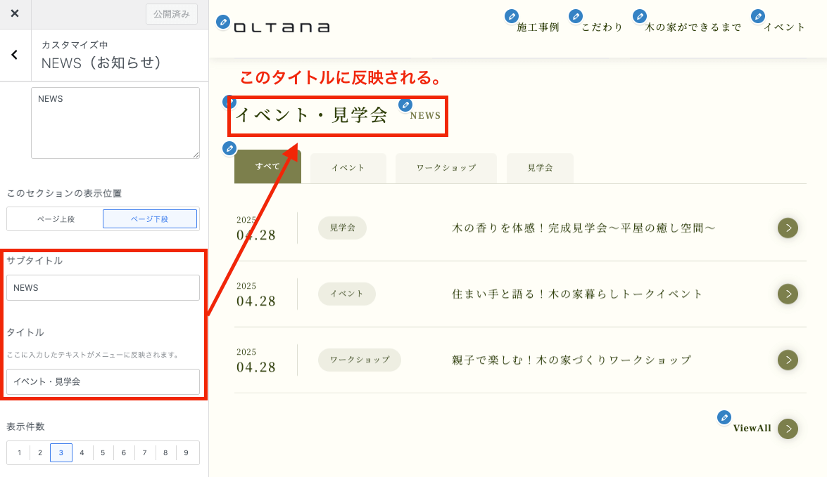 OLTANA No.005の 「NEWS(お知らせ)」の設定方法