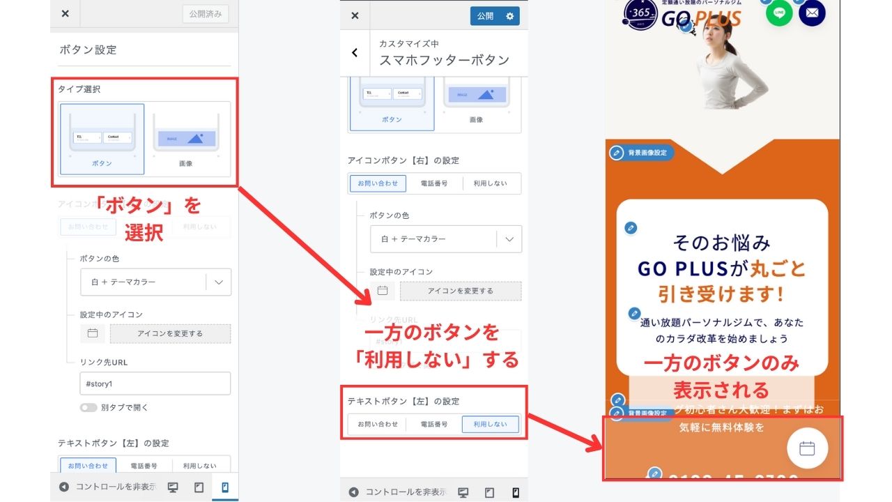 「カスタマイズ」 > 「スマホフッターボタン」に進みましょう。