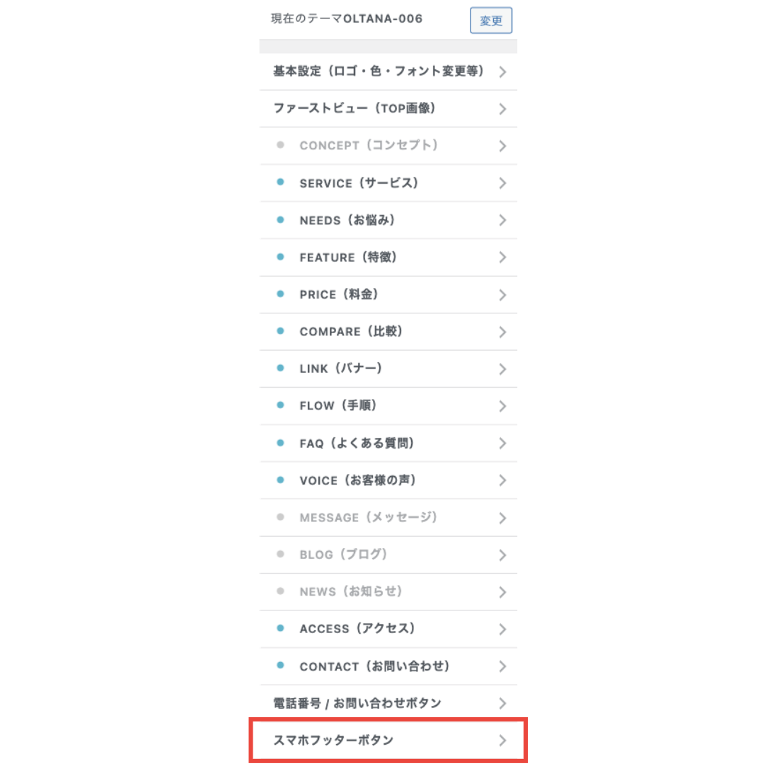 OLTANA No.006の「スマホフッターボタン」の設定方法